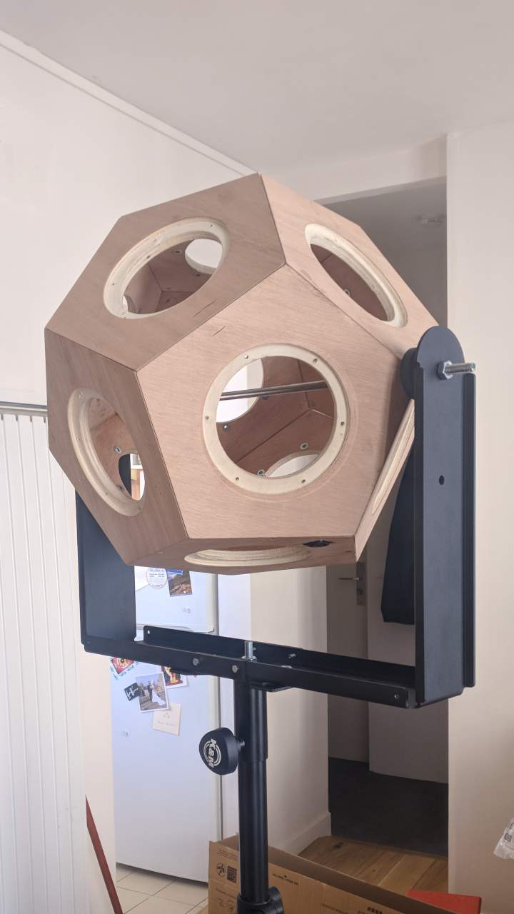 Castafiore Enceinte de mesure accoustique Essence : Contreplaqué.² Origine : Inconnue Une enceinte en forme de dodécaèdre, pour des mesures accoustiques.